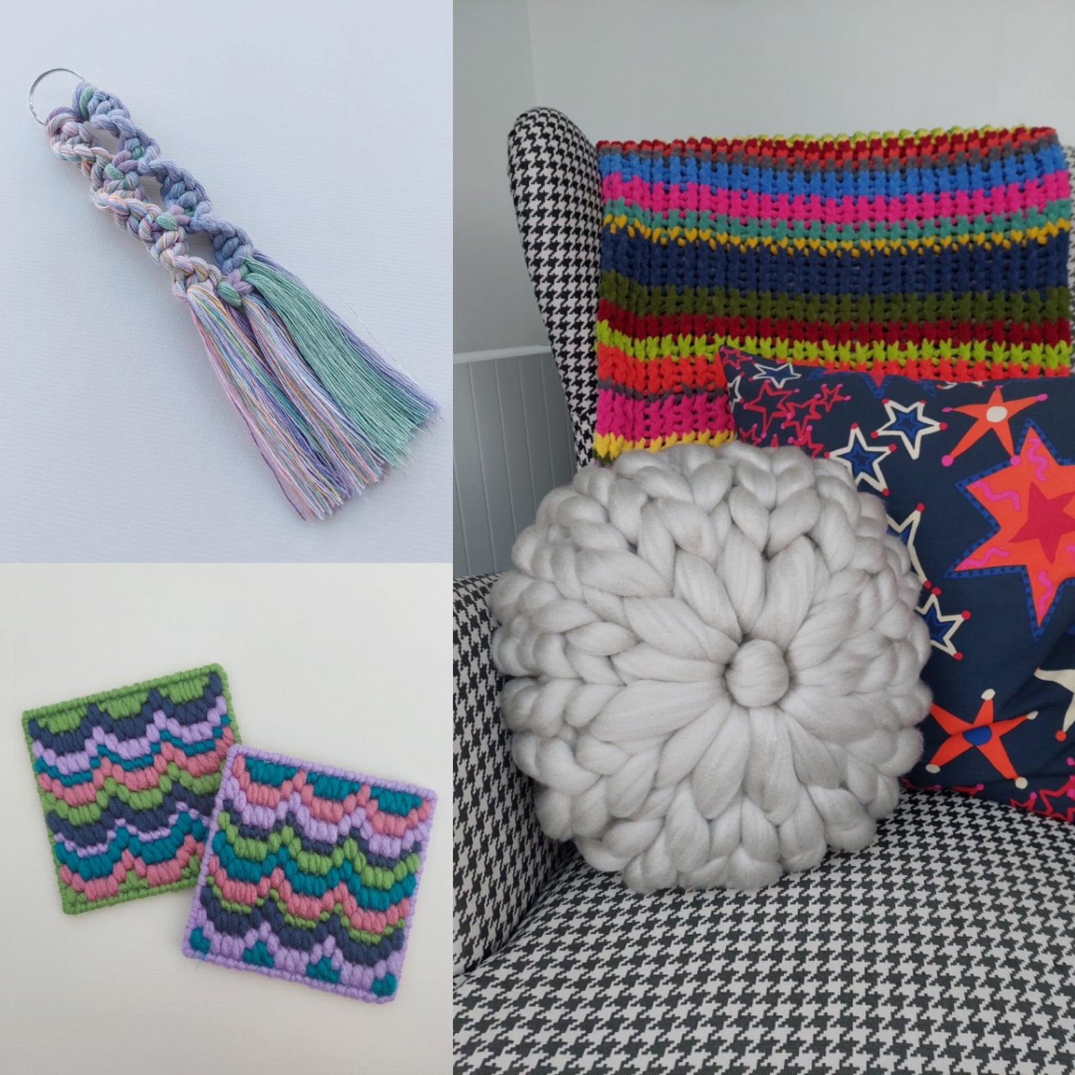 Spend a relaxing few hours crafting and create a super soft arm knitted cushion, a macrame keyring and bargello coaster. There will be several yarn colours to choose from for your arm knitted cushion. When you have booked your space on the workshop you will receive a colour chart so you can choose your yarn colour in advance of the workshop. During the workshop you will complete your cushion and keyring but you may not complete your bargello coaster however, you will leave with the techniques, materials and pattern to complete your coaster at home.